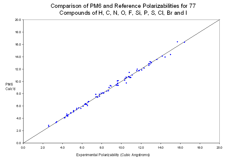 By use of a keywords "POLAR" and "STATIC" the polarizability of a molecule can be calculated. For a set of 77 neutral molecules, the average unsigned error was 2.1%.