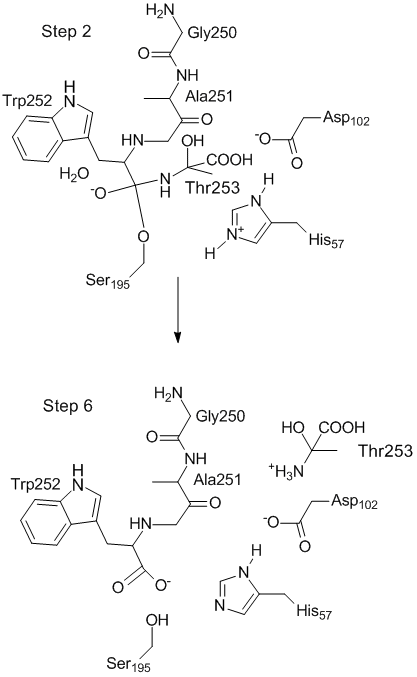 (Modeling proteins) (Chymotrypsin Mechanism: Step 1, Step 2, Step 3, Step 4, Step 5, Step 6)