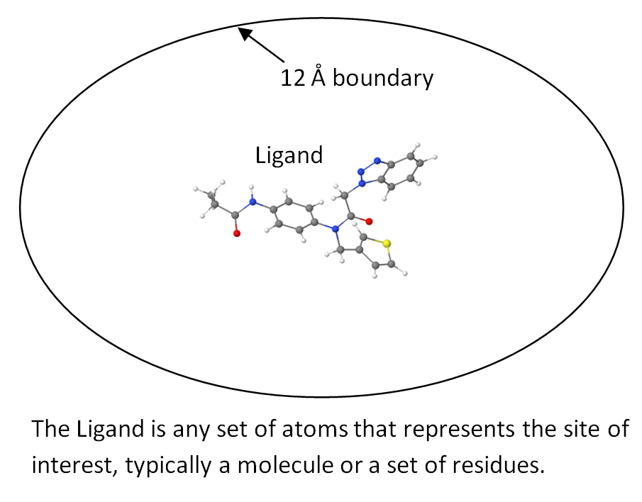 (1) The site of interest. This would normally be defined by the ligand(s) non-covalently bound to the enzyme or a set of residues that take part in a reaction mechanism.