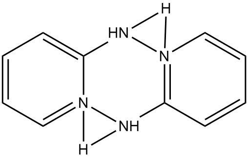 In EMETAS, HDPA exists as the cation. Because of symmetry disorder, the structure reported in EMETAS is a superposition of the various possible geometries. Even a cursory inspection of the reported structure, see Fig. 1, shows that there are severe problems, for example, the ring nitrogen atoms are bonded to the amine nitrogen, in variance with the known structure of HDPA. An idealized structure for this heterocycle is shown in Fig. 2.